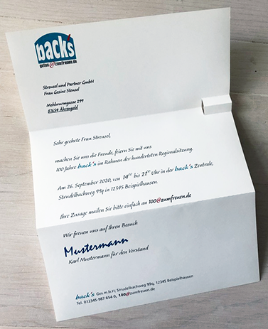 Wir unterstützen Sie gerne bei Gestaltung, Text und Druckvorlagenherstellung. Wenn Sie mögen, drucken wir auch oder liefern einsatzbereite Mailings.